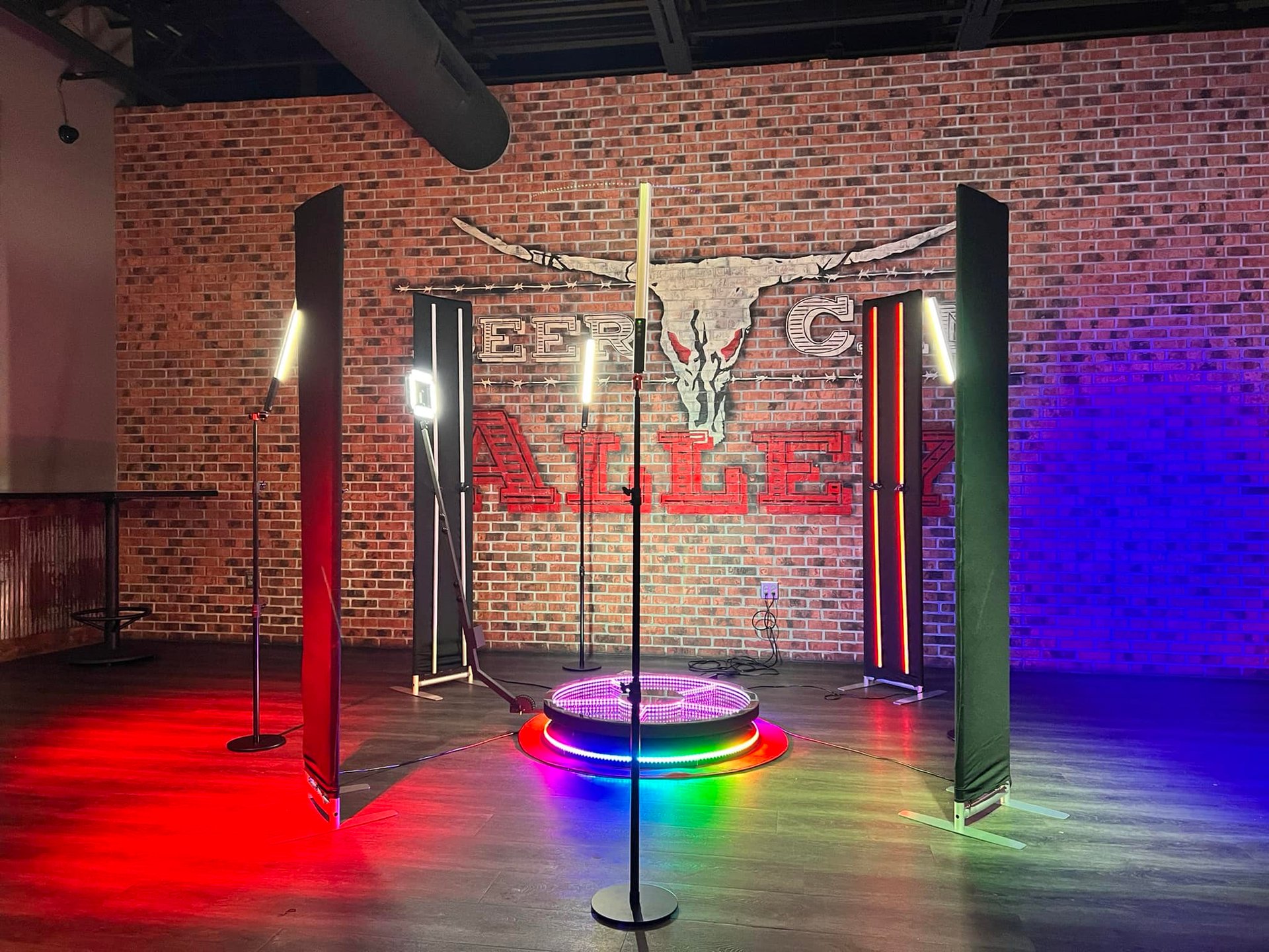 Both our photo booth and 360° video spinner come with an attendant, backdrops, props, and lighting, with fun add-ons available, like guest books for photo strips and highlight videos for your 360° moments. Add custom text or a logo to make it truly personalized!